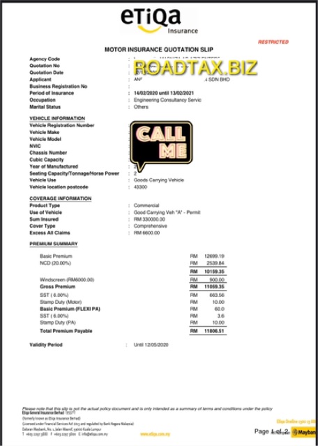 Ini Adalah Contoh Quotation Roadtax Dan Insurance Murah Facebook