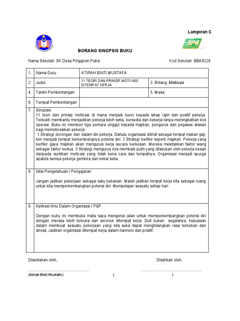 MOTIVASI MOTIVASI DI TEMPAT KERJA 4. Lampiran C BORANG SINOPSIS BUKU Nama Sekolah. Sekiranya anda berminat untuk membeli buku-buku hasil karya Faizal Yusup siap dengan autografnya sekali begini caranya.