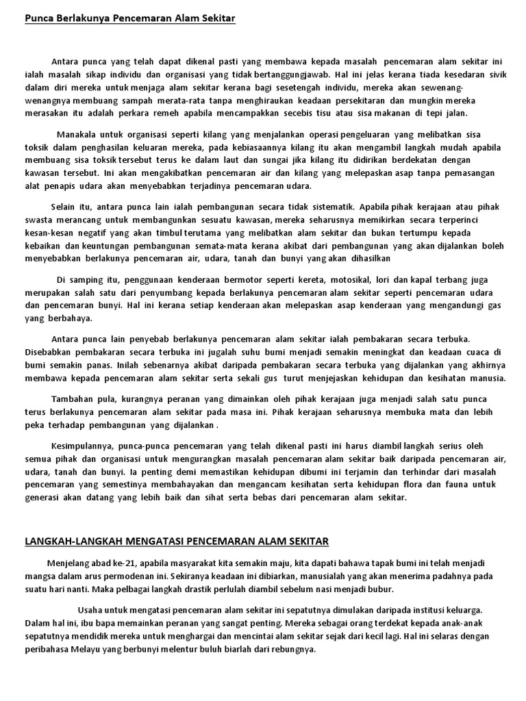PENGENALAN KEPADA BEBAN PENCEMAR. Pada hemat peribadi sayapunca-punca berlakunya pencemaran alam sekitar di Malaysia yang dominan ialah kerana sikap individu dan organisasi yang tidak. Karangan Langkah Mengatasi Pencemaran Alam Sekitar.